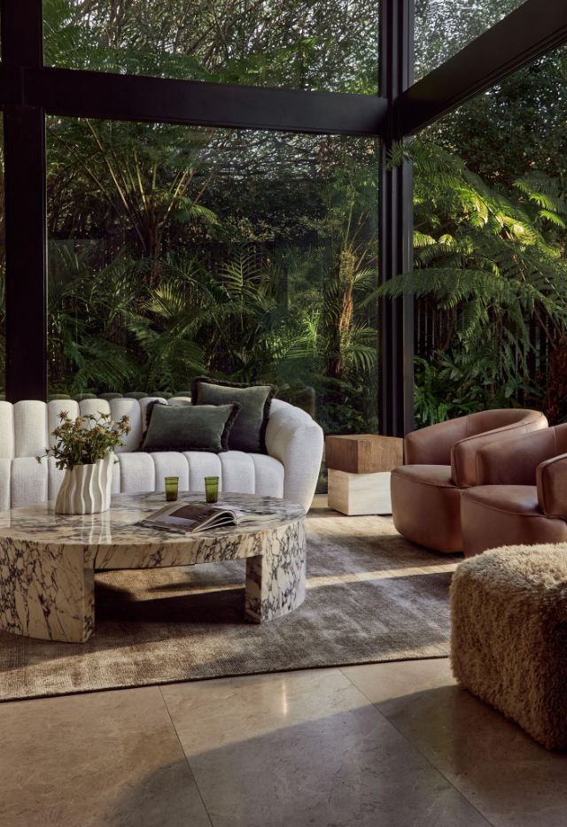 Designer tip: Think in threes: anchor the room with a single statement sofa, introduce two to three layers of textiles, and then achieve balance with accessories or natural elements such as timber, stone, or greenery to complete the composition.
