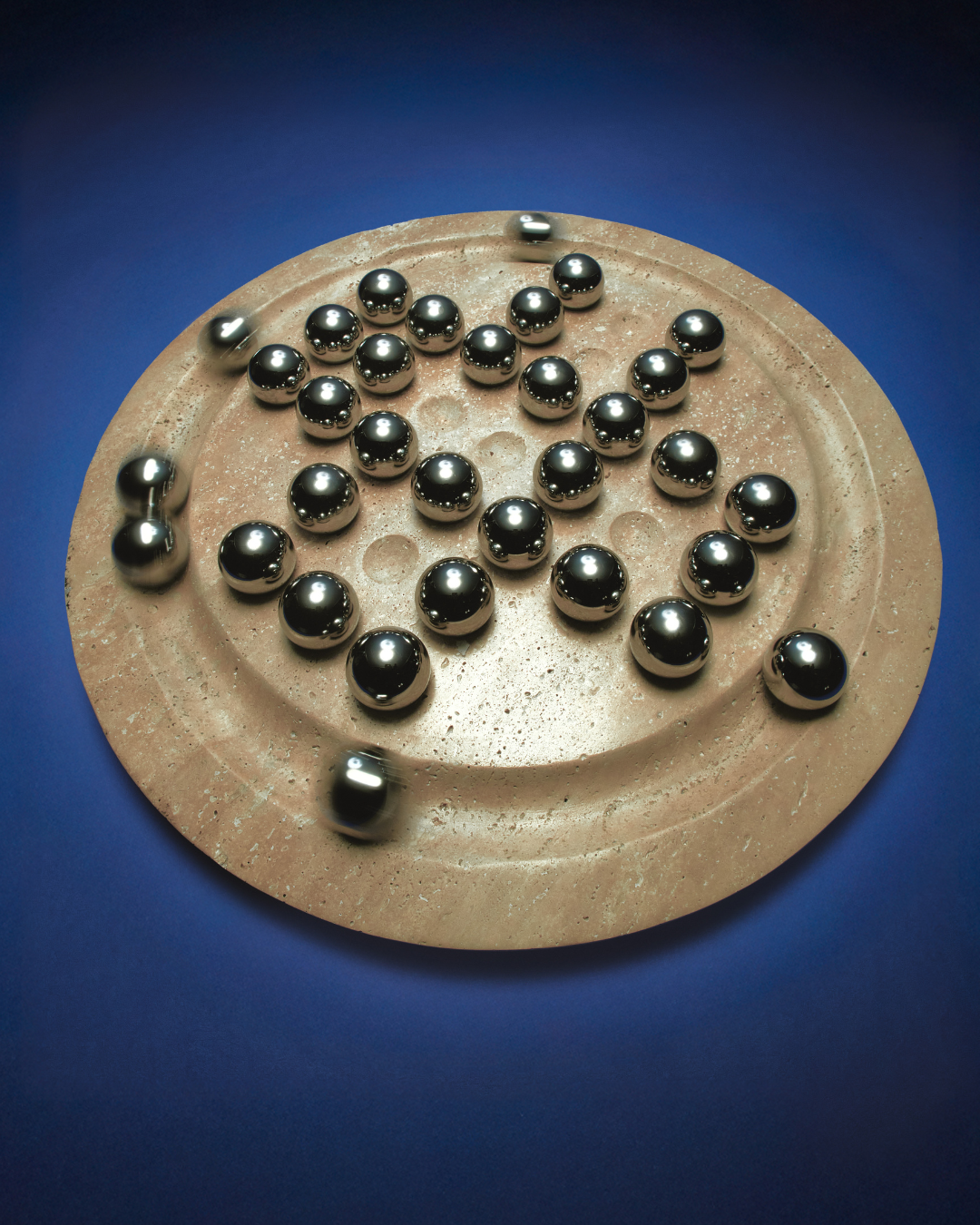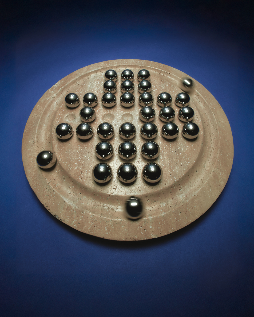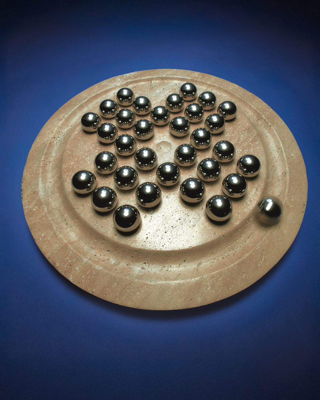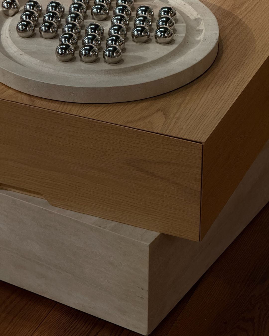 Carved from solid travertine, the Cromwell Solitaire is both game and artwork - a modern heirloom that brings playfulness and heritage design to a room.