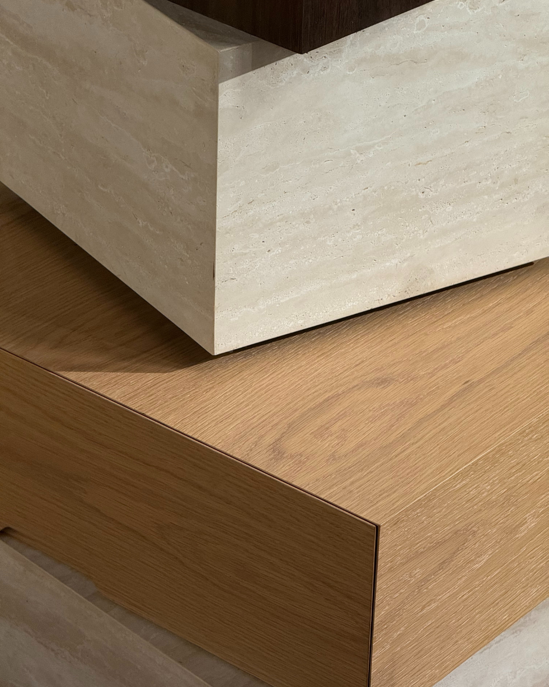 The Sierra Side Table has a stacked silhouette and natural textures, balance practicality with sculptural presence.