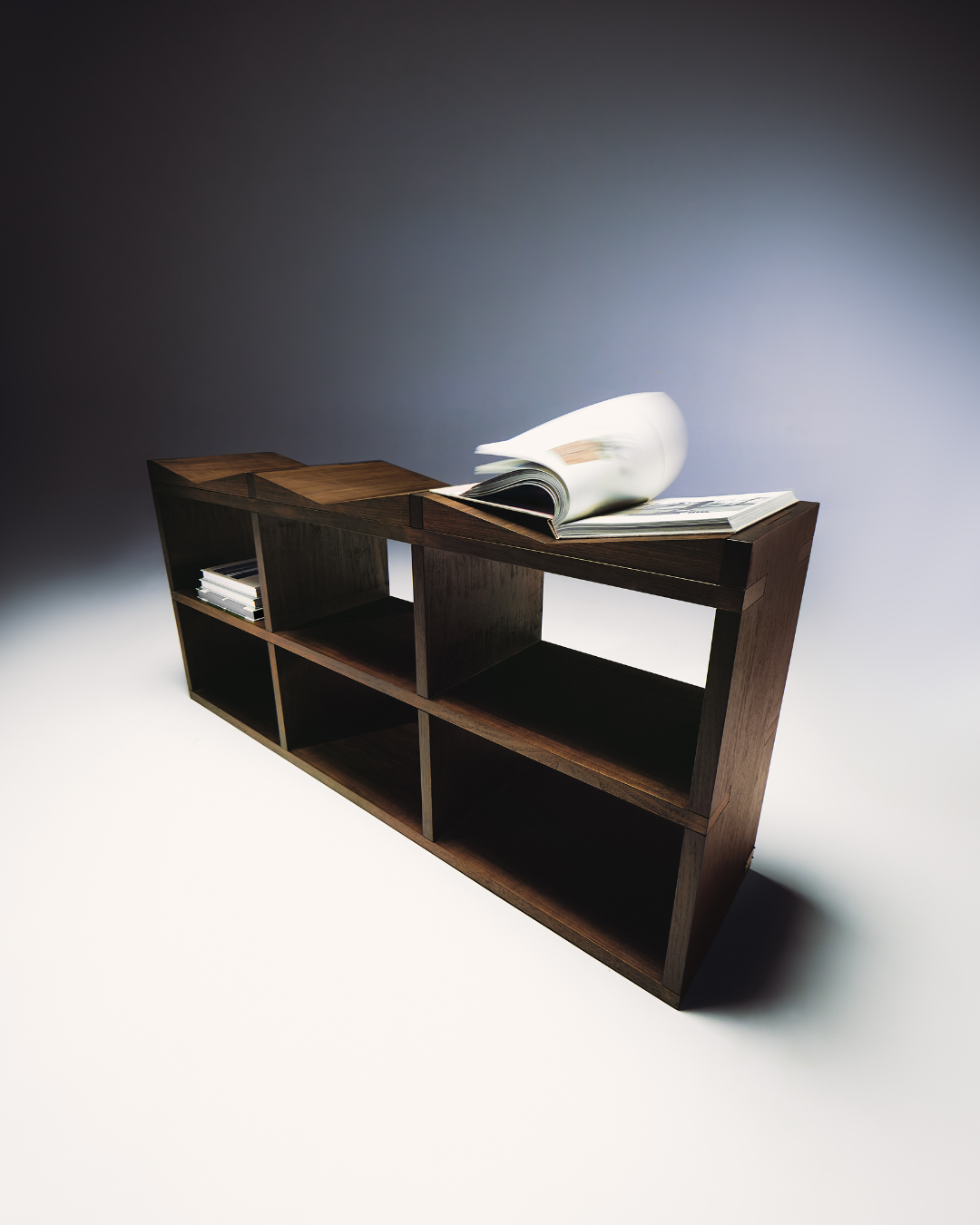 Celebrating the simple pleasure of living with books, the Omaha Book Console brings sculptural form and reversible panels that showcase treasured covers and objects.